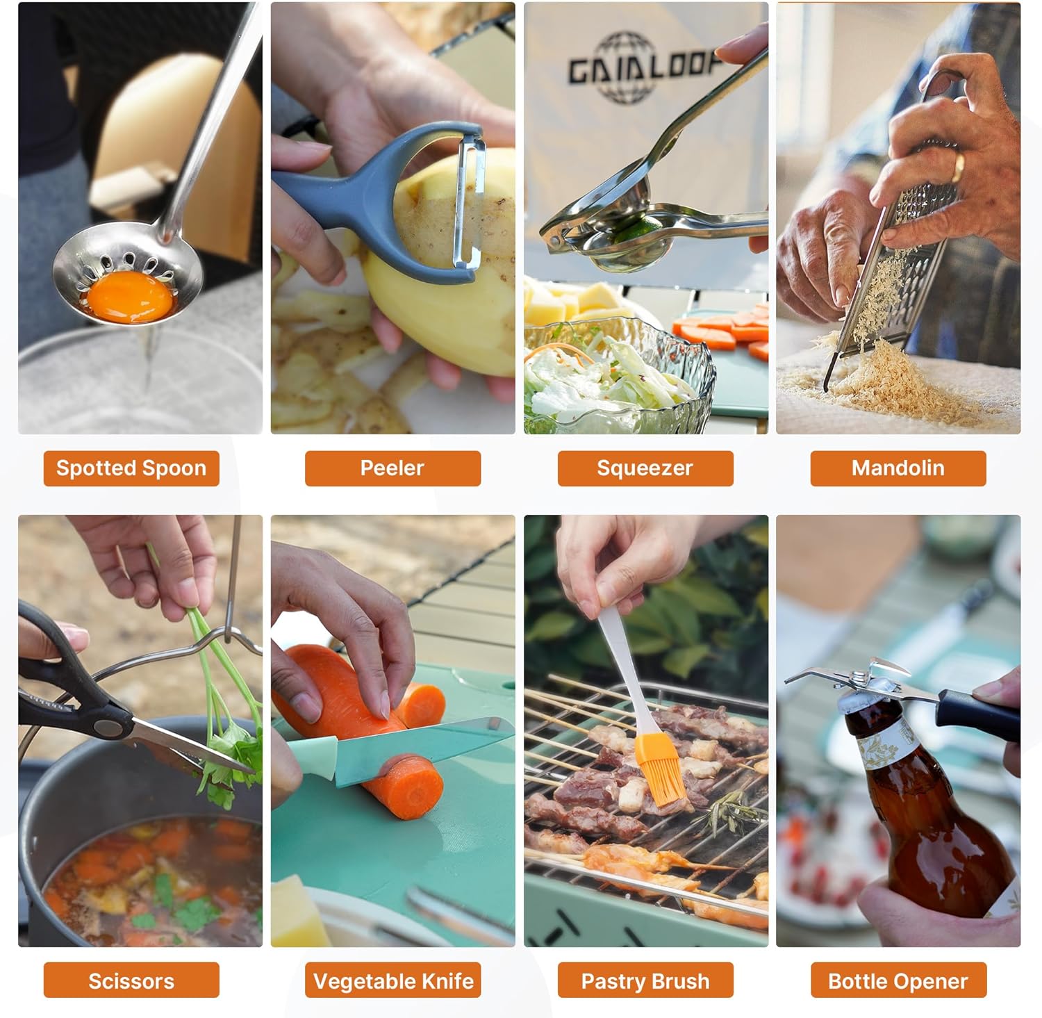 Typical Contents: Components often include a mix of cutlery, cooking, and prep items such as: